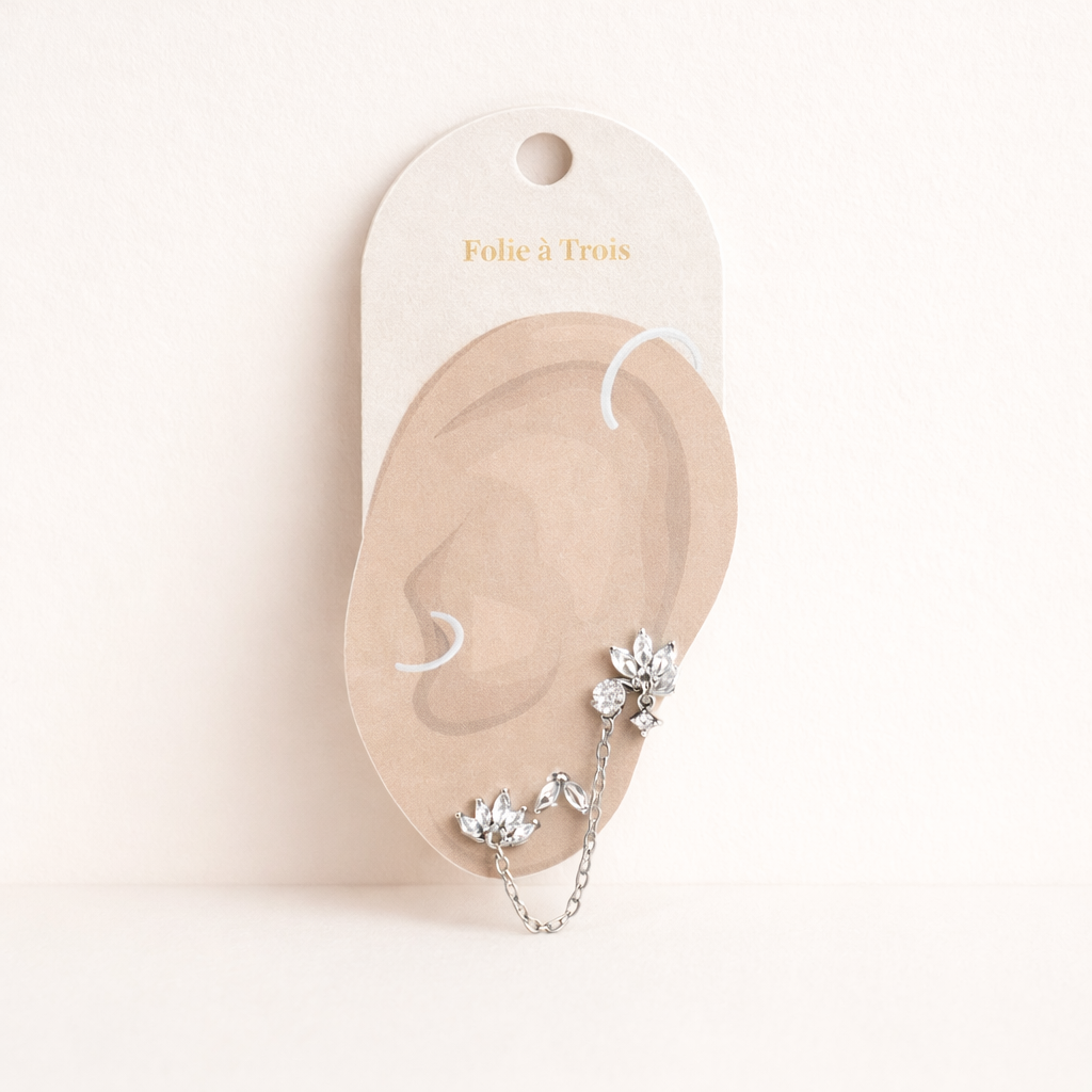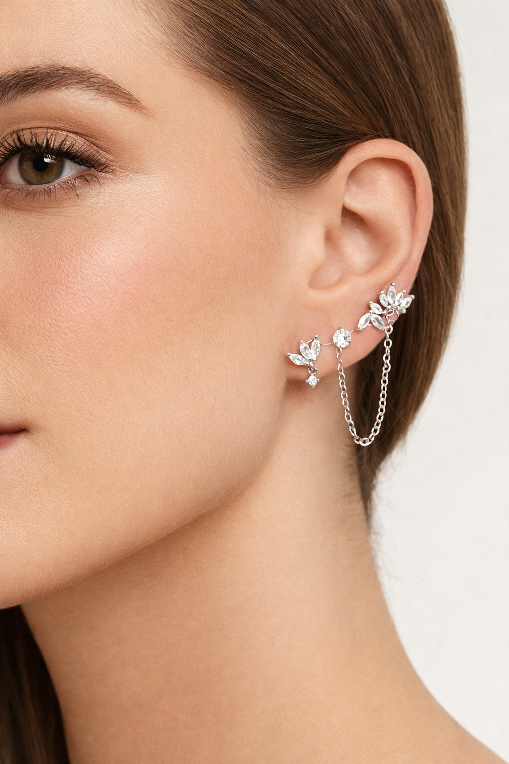 Mix, match, and make magic with the Yvette SET—four stainless steel studs designed for endless ear-party possibilities. Two earrings are delicately connected by a fine chain, letting you stack, layer, and style with total freedom. Hypoallergenic and versatile, this set is your secret weapon for creating that coveted multi-piercing look without the commitment. Stack them your way and own the moment.