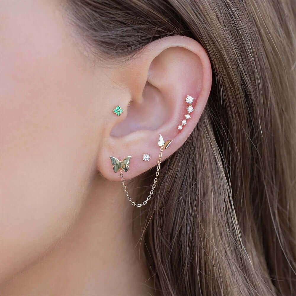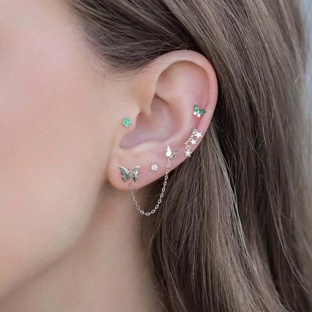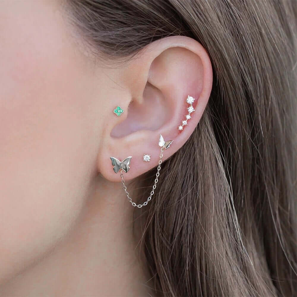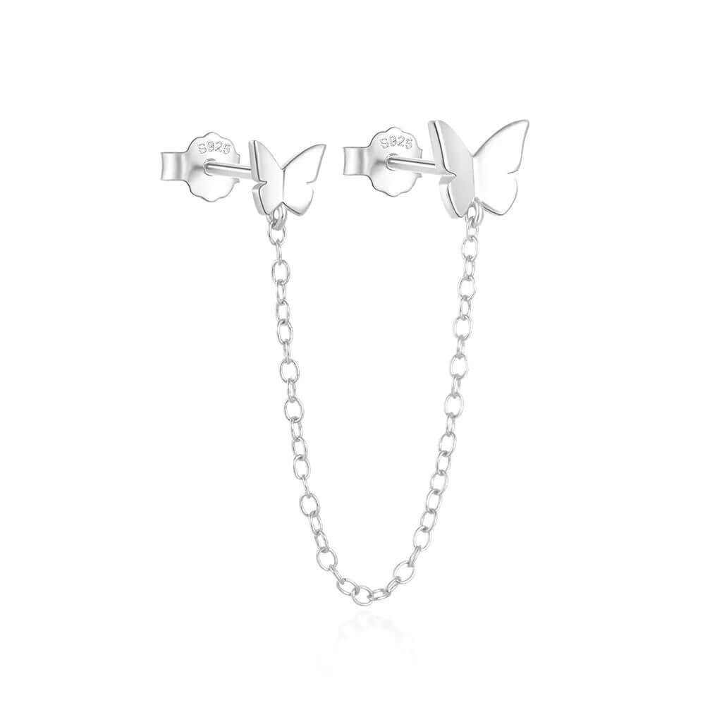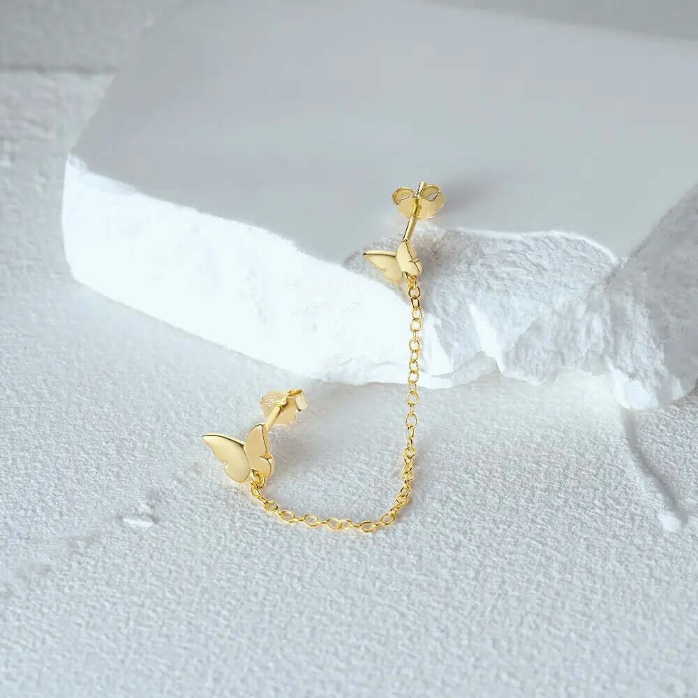 Look fly with these flirtatious earrings! Crafted from sterling silver, these stud earrings feature two elegant little butterflies delicately connected by a fine chain. Get ready to unleash some magic!