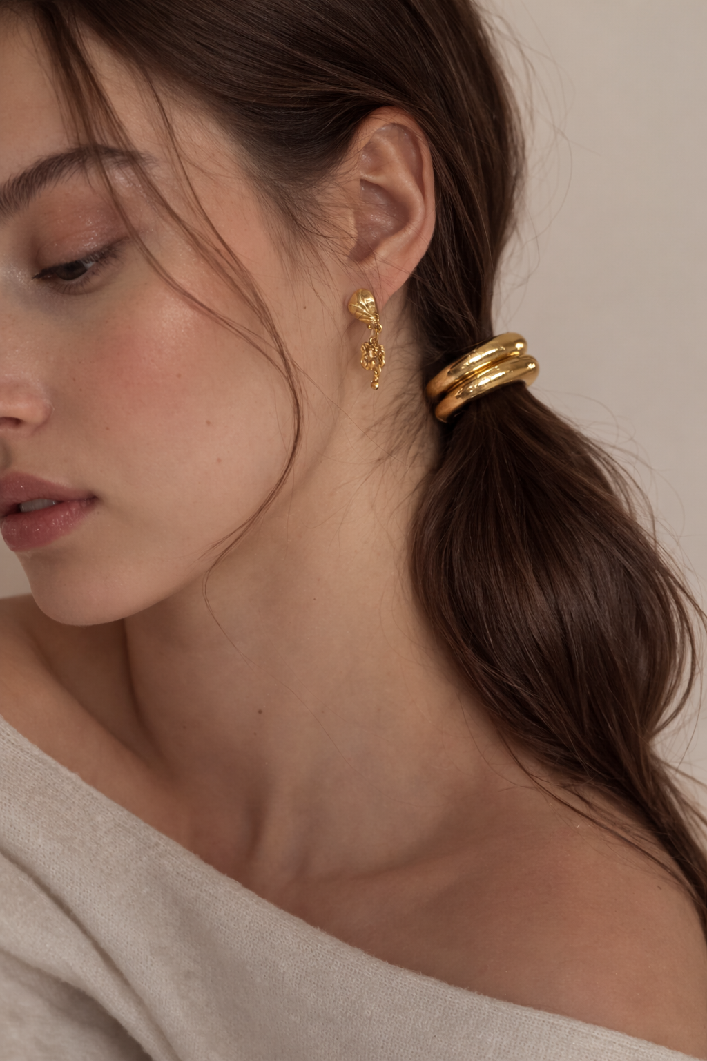 Elevate your everyday styling with the Bridgette Hair Tie in lustrous gold. This elegant accessory combines timeless sophistication with practical functionality, securing your hair while adding a touch of refined glamour. Perfect for both casual and polished looks, the gold finish complements any complexion and works seamlessly with any outfit. A versatile essential that transforms simple hairstyles into statement moments.