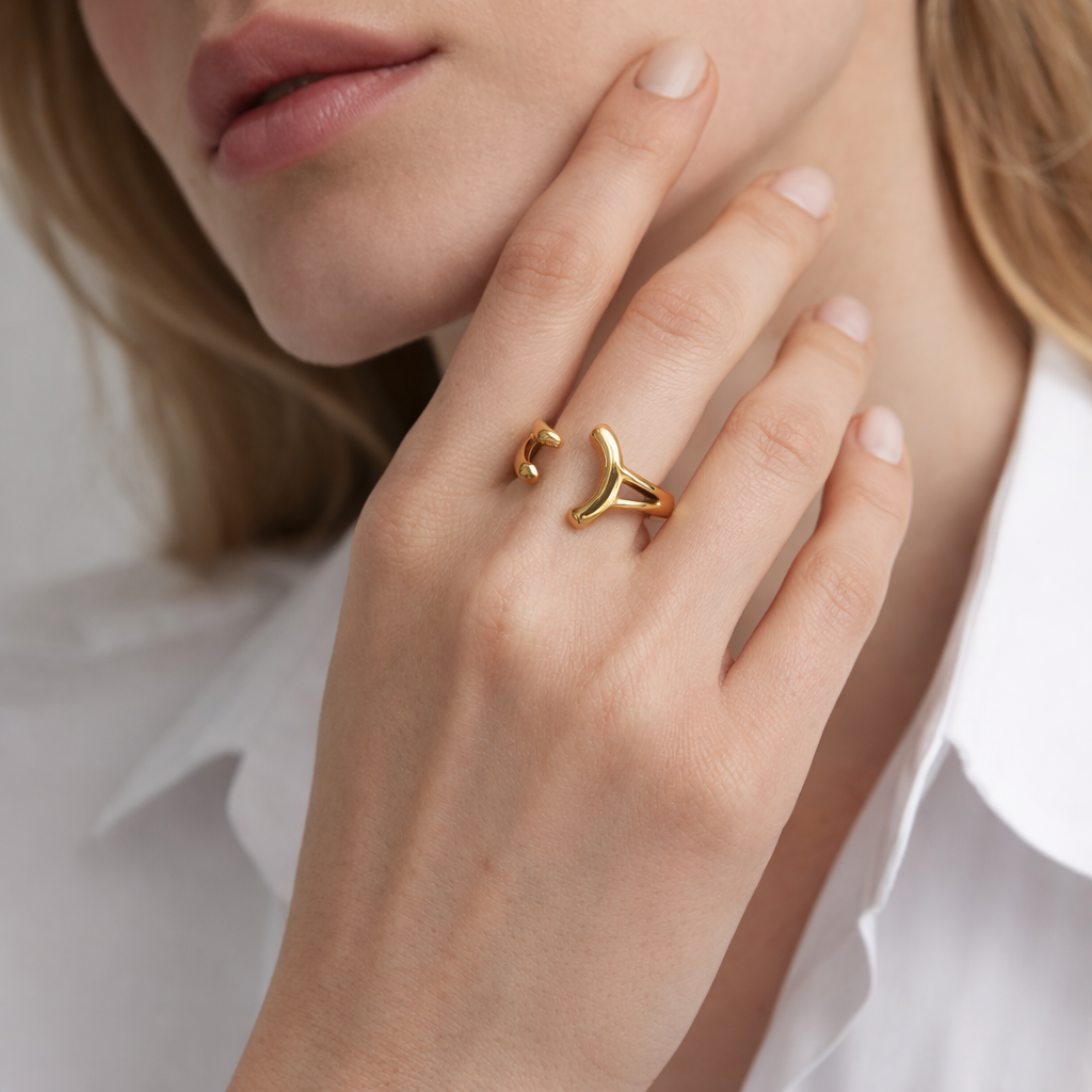Crafted from stainless steel, this ring is waterproof and hypoallergenic, designed for comfort and durability. Its open structure allows for a flexible fit, making it an effortless addition to any jewelry stack.