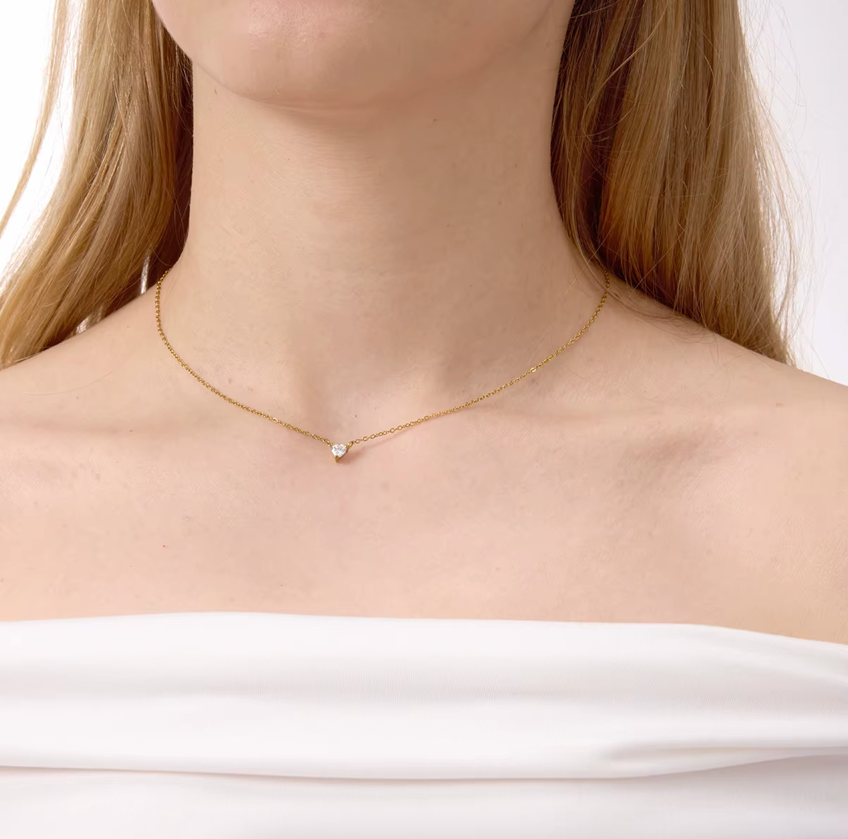 This gold jewelry set pairs a delicate necklace with matching stud earrings for a timeless, understated look. Each piece features a clear stone set in a sleek gold setting, creating a subtle sparkle that feels both modern and effortless.
