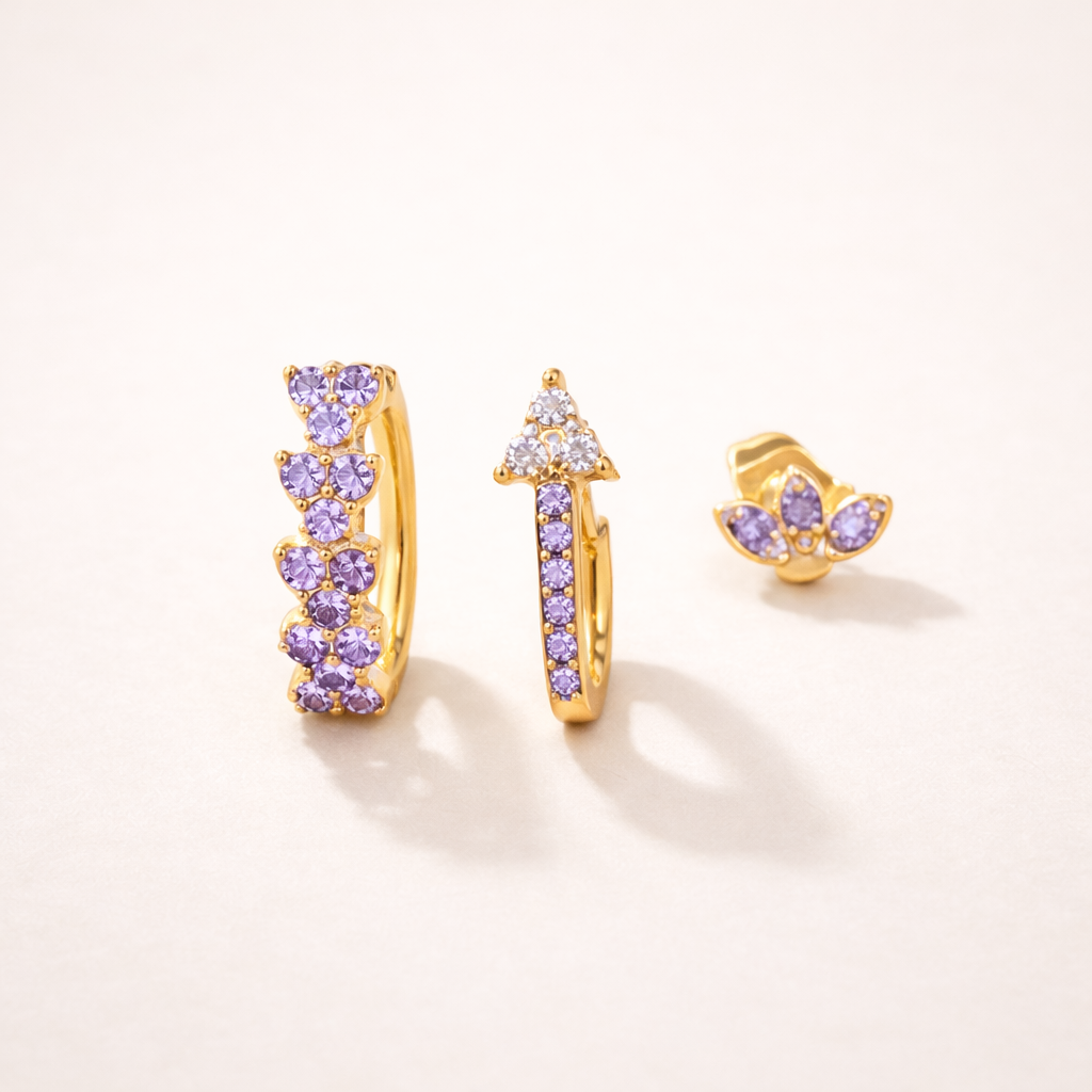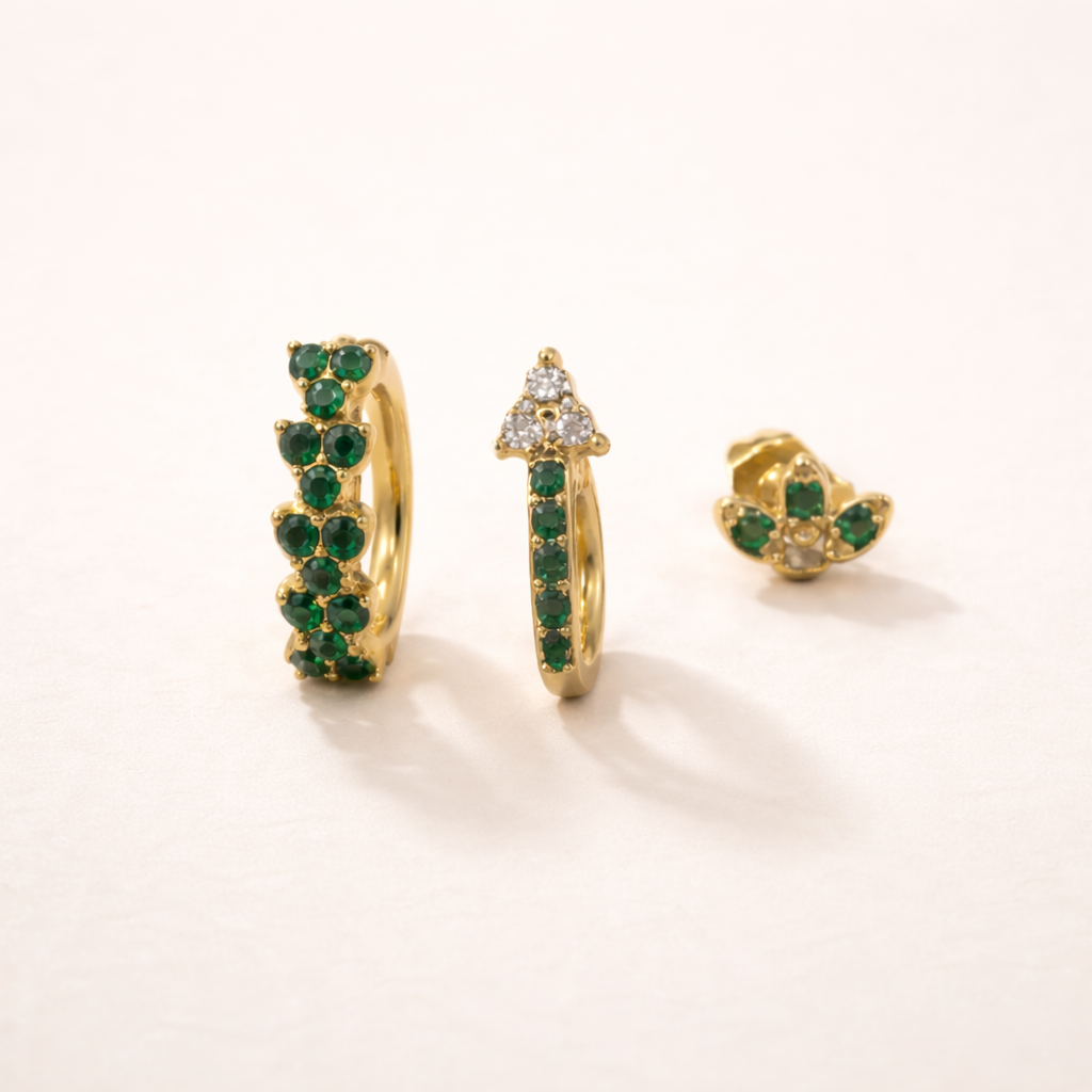 Get ready to elevate your earring game with the Rosalia SET! This motomami-inspired earring set is the perfect mix of modern and artistic, adding glamour to any outfit. Say goodbye to boring earrings and hello to a unique, playful style.