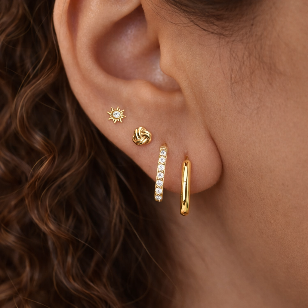 Add a touch of fun flair to your look with the Coco SET! This playful Set pairs two charming hoops with two studs, letting you mix and match your style with ease. Perfect for adding sparkle and personality whether you want subtle shine or a bold statement. Light, comfortable, and ready to brighten your day!