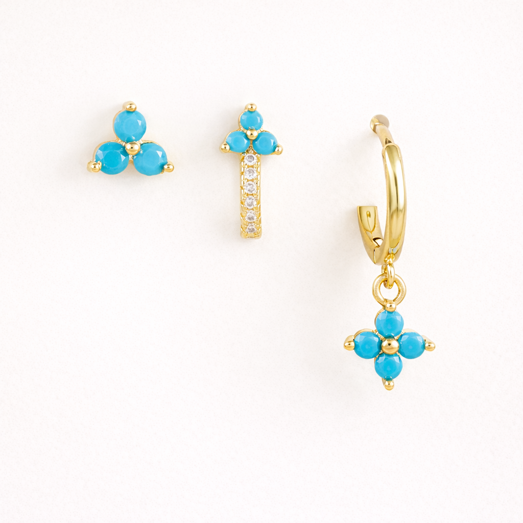 Introducing the Daria SET - a playful trio of stainless steel jewelry featuring 2 hoops and 1 stud, available in a variety of funky colors. Elevate your accessory game with this quirky and durable set.