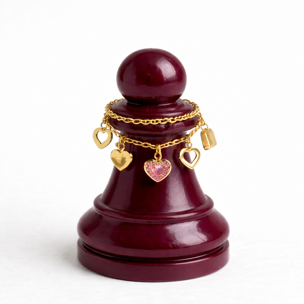 Répandez l'amour à votre poignet avec ce charmant bracelet en acier inoxydable, orné d'une multitude de délicats pendentifs en forme de cœur qui se balancent au gré de vos mouvements. Une déclaration d'affection ludique, parfaite pour toutes les occasions, des rendez-vous entre amis autour d'un café aux célébrations spéciales. Durable, hypoallergénique et toujours aussi amusant – car afficher ses sentiments, c'est tellement démodé !