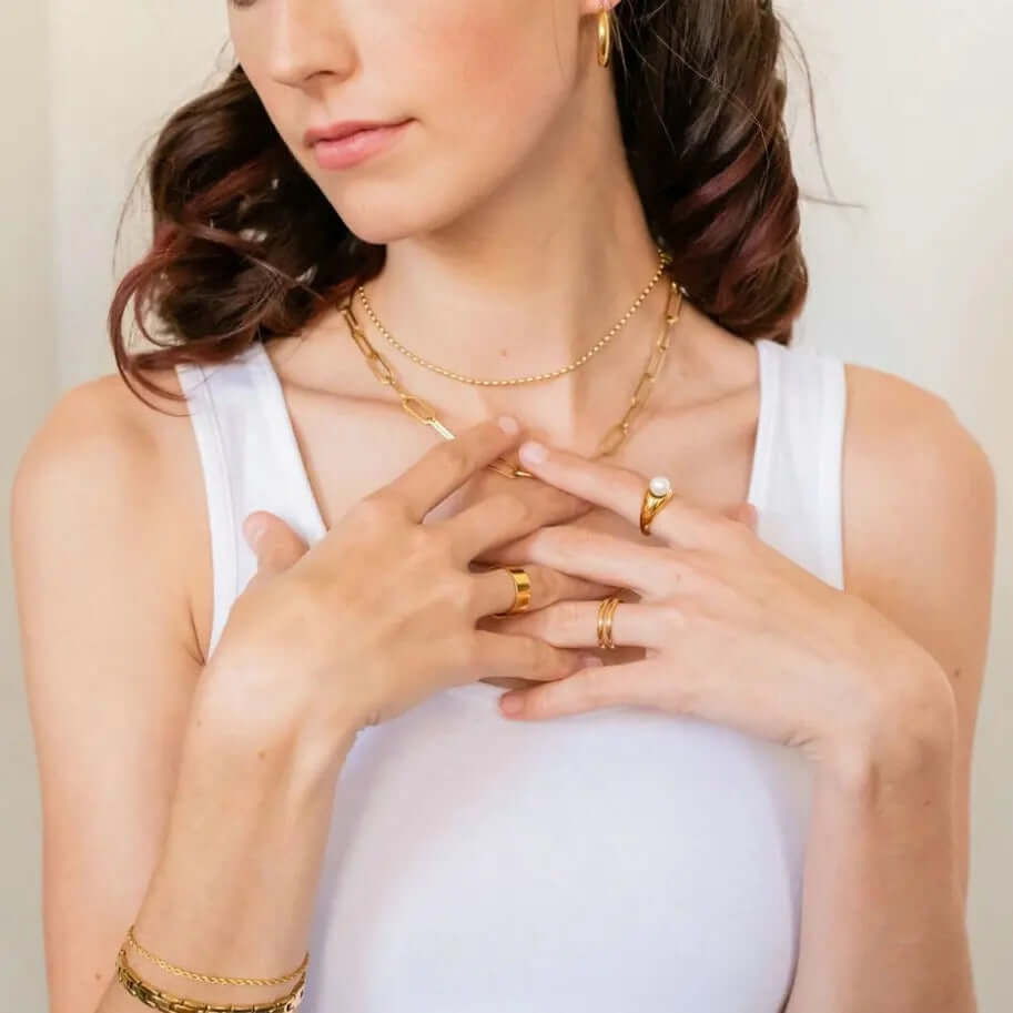Folie à Trois – Made for women by women. We craft fine jewellery using sustainable sterling silver and stainless steel, plated with 3 micron 14k gold.