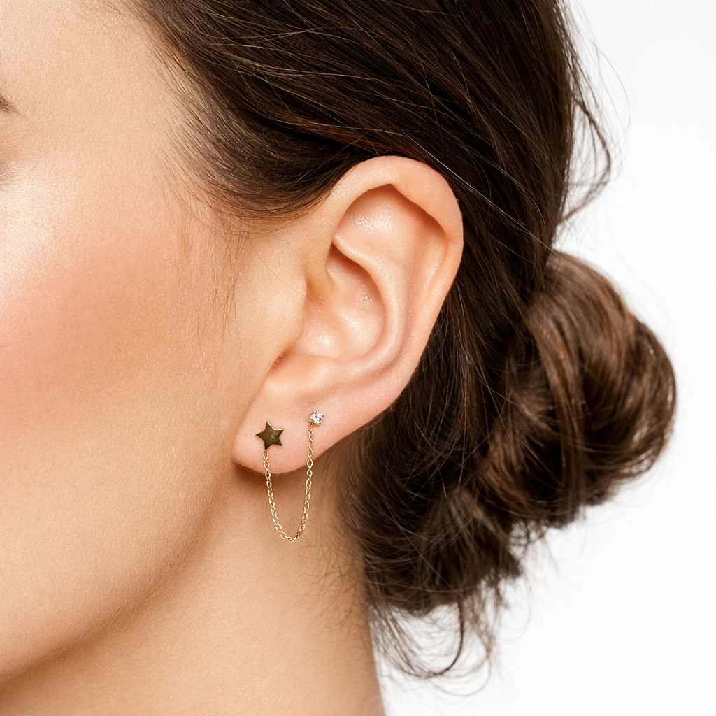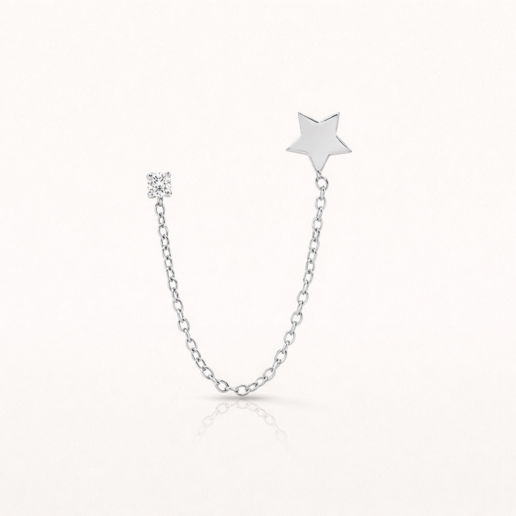 Faites décoller votre style avec ces boucles d'oreilles ! Fabriqué à partir d'argent sterling, cet ensemble de deux pièces ajoutera à coup sûr de l'éclat à votre ensemble. Reliées par une chaîne délicate, ces étoiles filantes ne manqueront pas de faire tourner les têtes. Préparez-vous à briller comme un diamant, sans avoir à souhaiter une étoile !