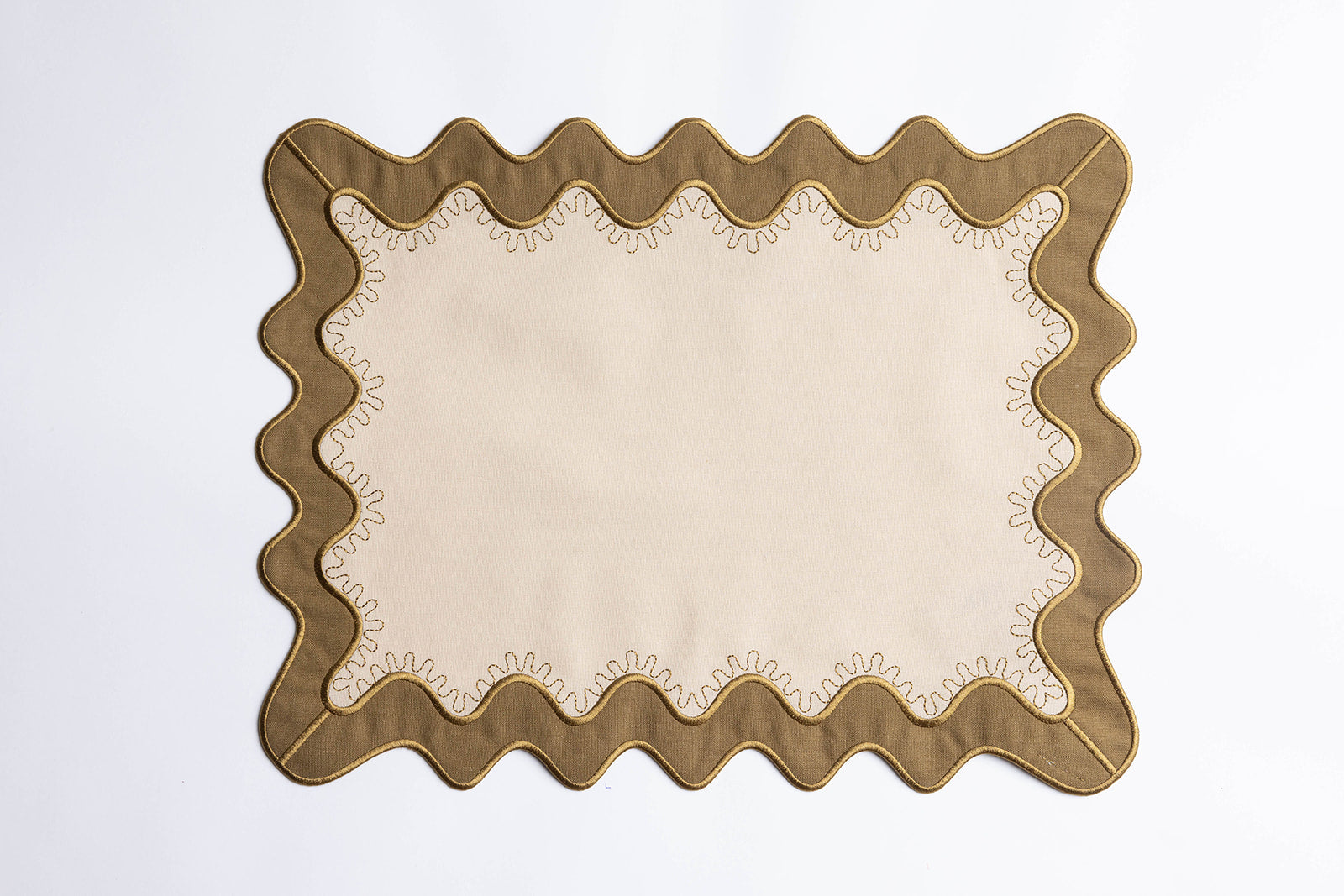 Add a touch of whimsy to your table setting with our Scallop Placemat. Crafted from soft linen, this colorful placemat features a playful scalloped design and bold trim. Perfect for elevating any meal with a dash of charm.