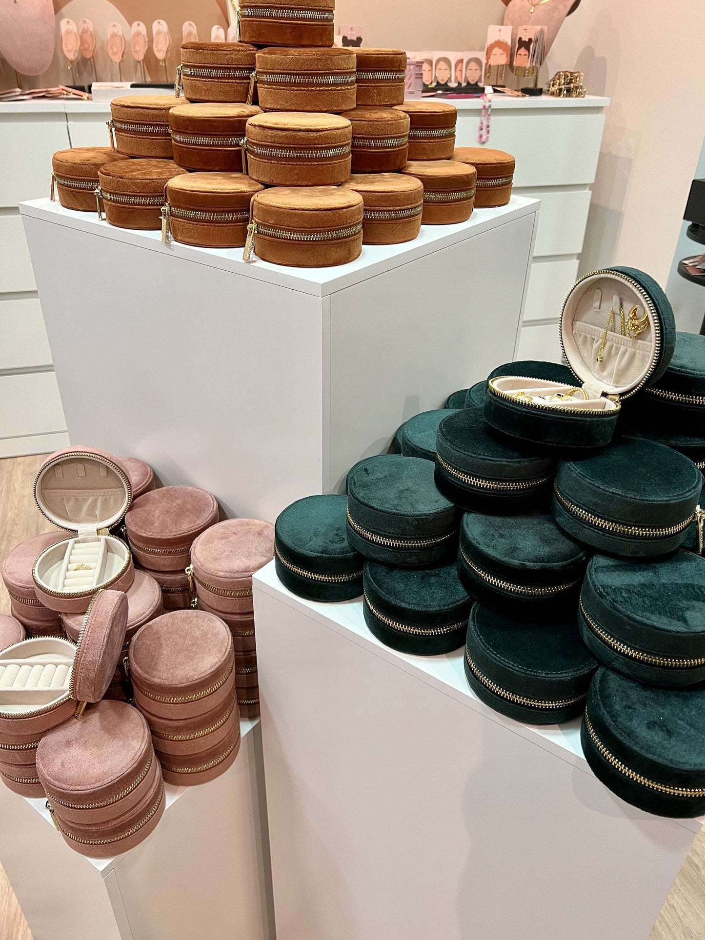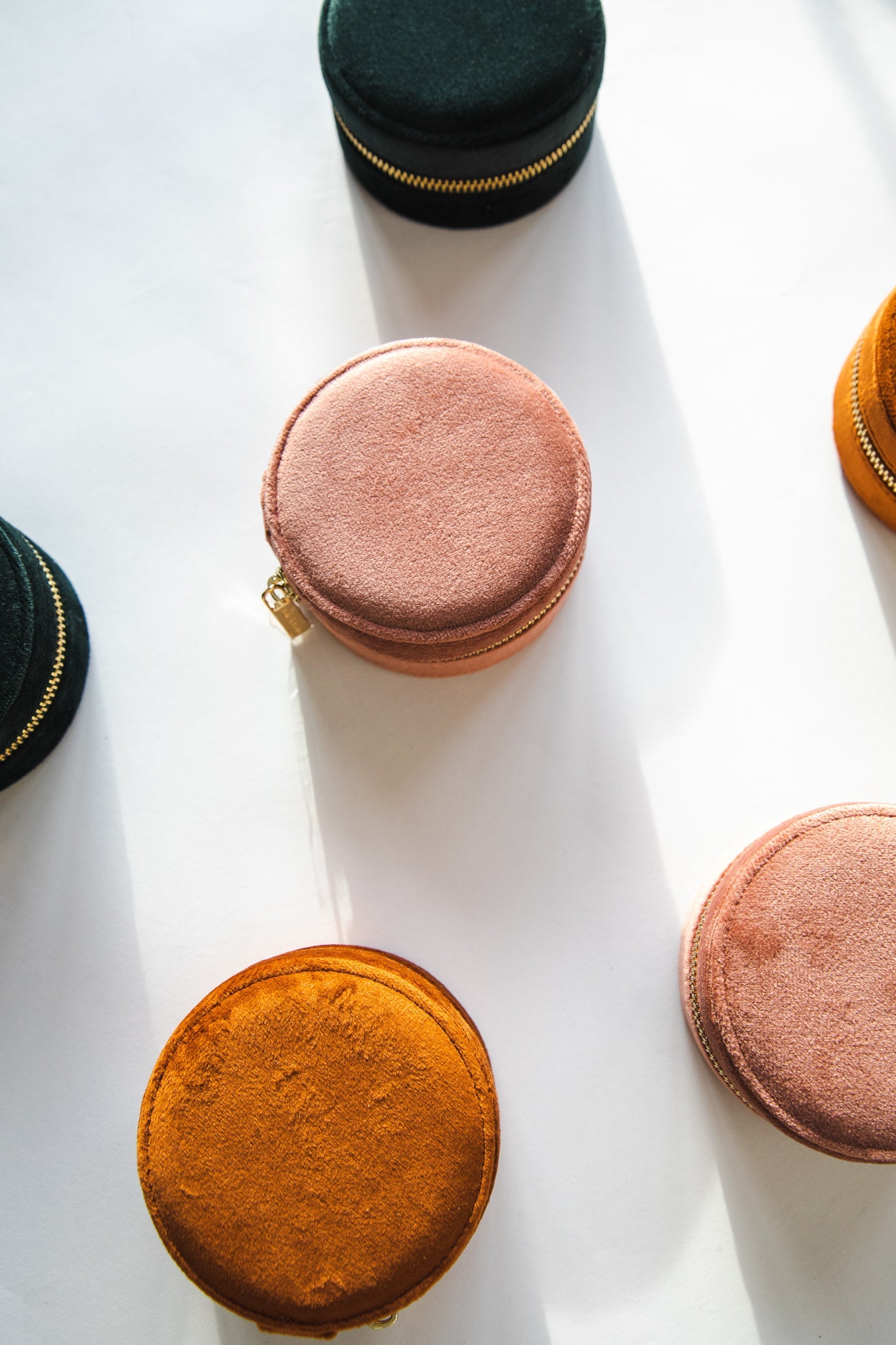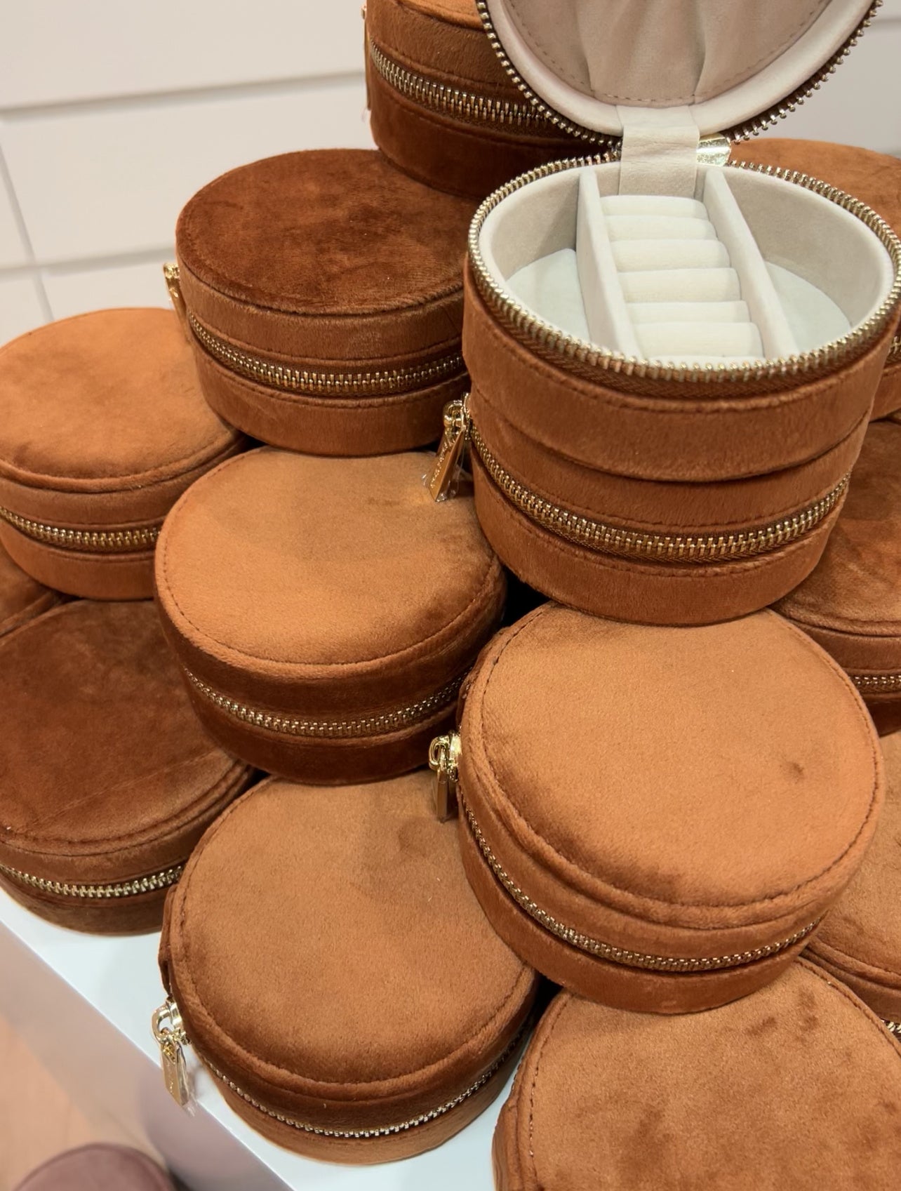 • Étui à bijoux de voyage en velours ronde bordé d'une fermeture de fermeture éclair en métal intelligent