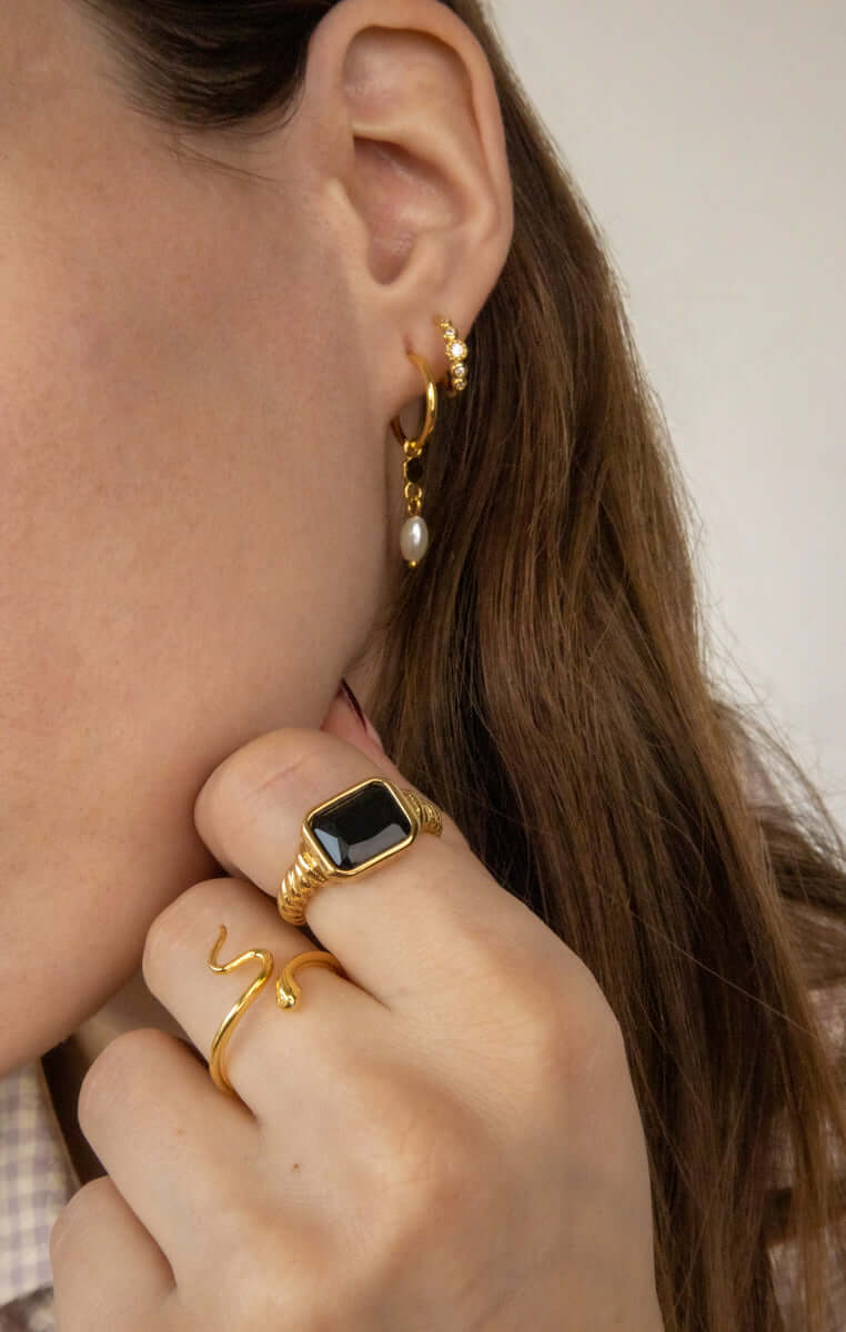 Folie à Trois – Made for women by women. We craft fine jewellery using sustainable sterling silver and stainless steel, plated with 3 micron 14k gold.