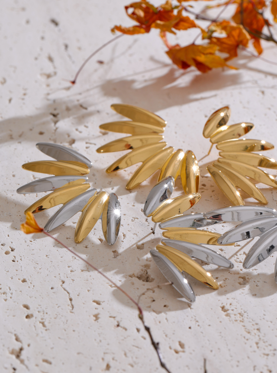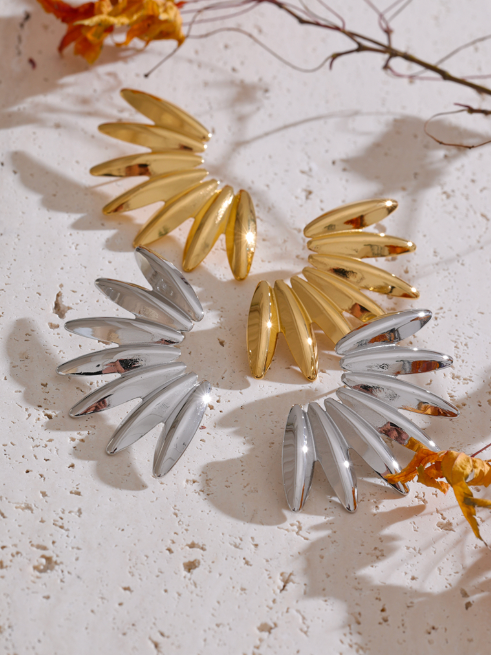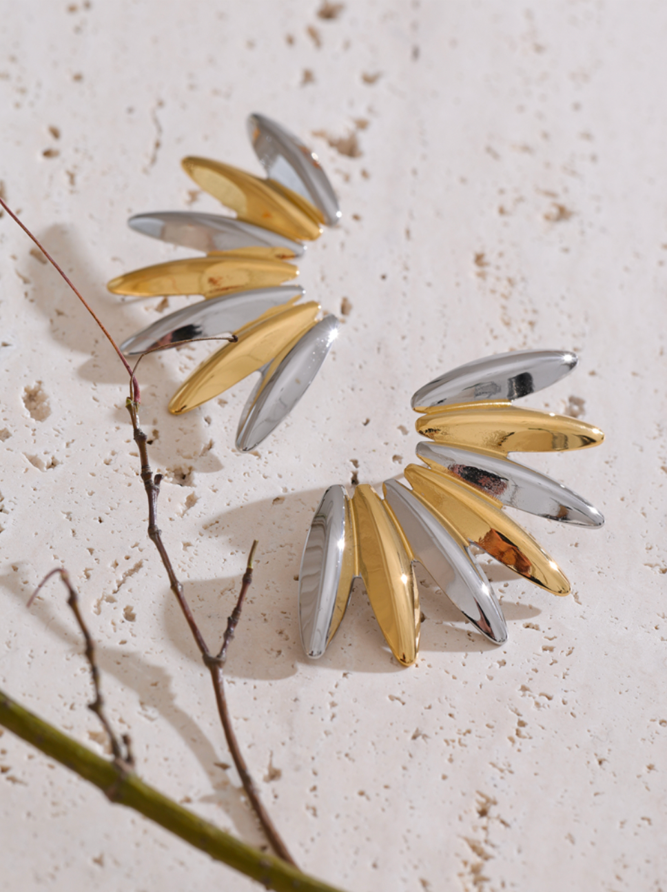 Voeg een vleugje speelsheid toe aan je look met deze roestvrijstalen oorknopjes in de vorm van halve cirkels, gemaakt van delicate bloemblaadjes. De Kyra oorbellen geven elke outfit een speelse charme en combineren bloemige elegantie met moderne eenvoud voor een sprankelende, alledaagse look.