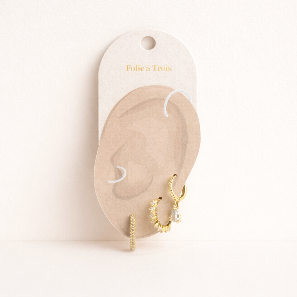 Folie à Trois – Made for women by women. We craft fine jewellery using sustainable sterling silver and stainless steel, plated with 3 micron 14k gold.