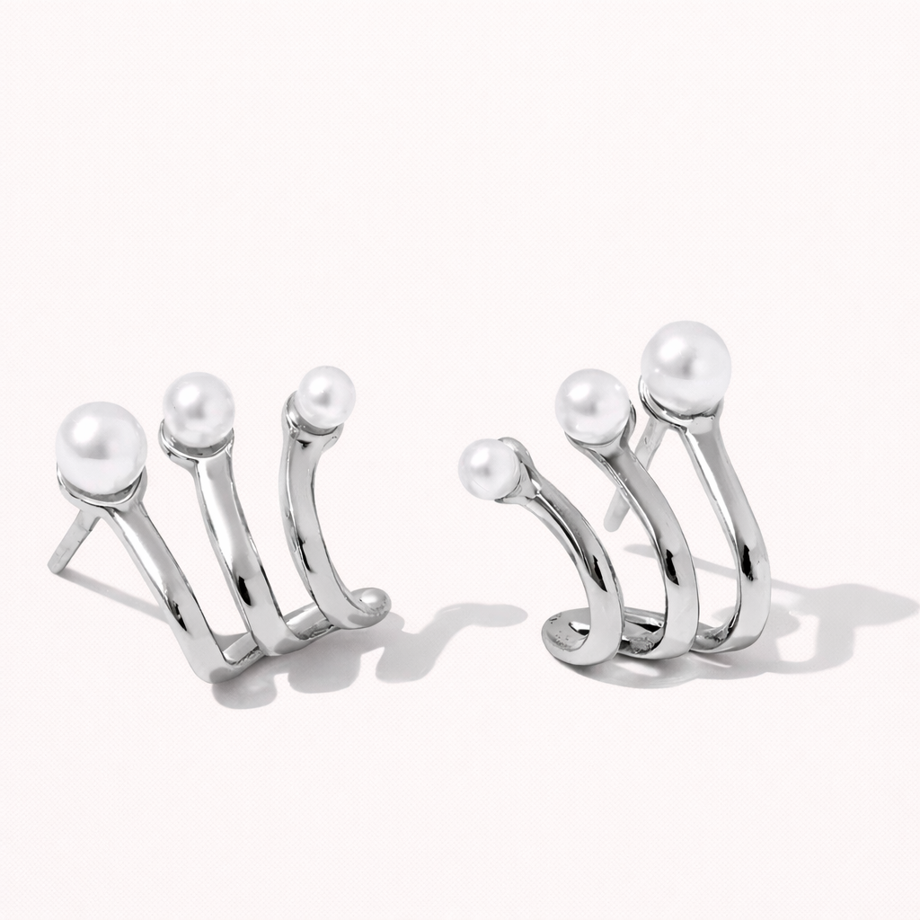 De Effie oorbellen combineren stoere, roestvrijstalen studs met delicate pareldetails voor een chique, maar speelse look. Perfect om een vleugje verfijning met een verrassende twist aan je dagelijkse stijl toe te voegen.