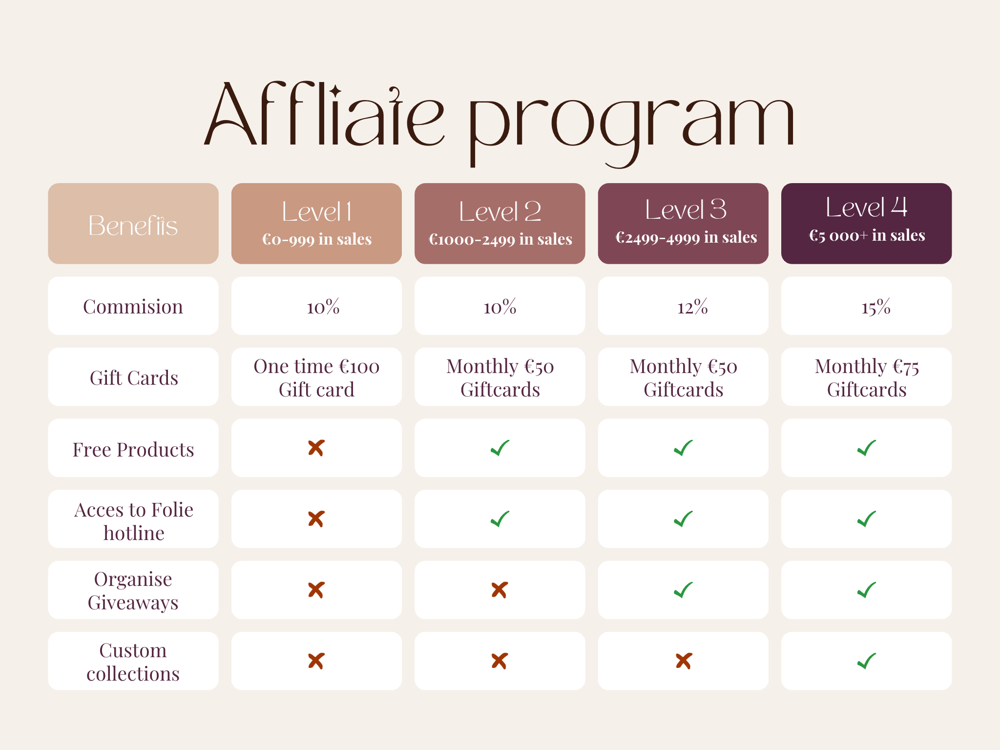 As an affiliate partner, you'll have the opportunity to earn commission by promoting our brand and products to your audience. We value our affiliate partnerships and strive to provide our partners with the resources and support they need to succeed.