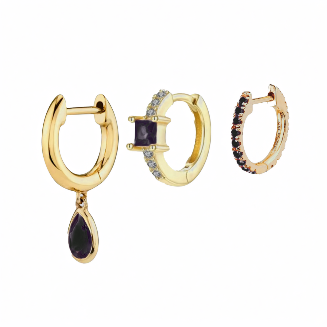Get ready to elevate your style with the Maisie SET - a luxurious and romantic set of purple earrings (Maisie earrings Set) that will add a sleek touch to any outfit. With its unique design and beautiful color, this set is sure to make a statement. Don't miss out on this must-have accessory!