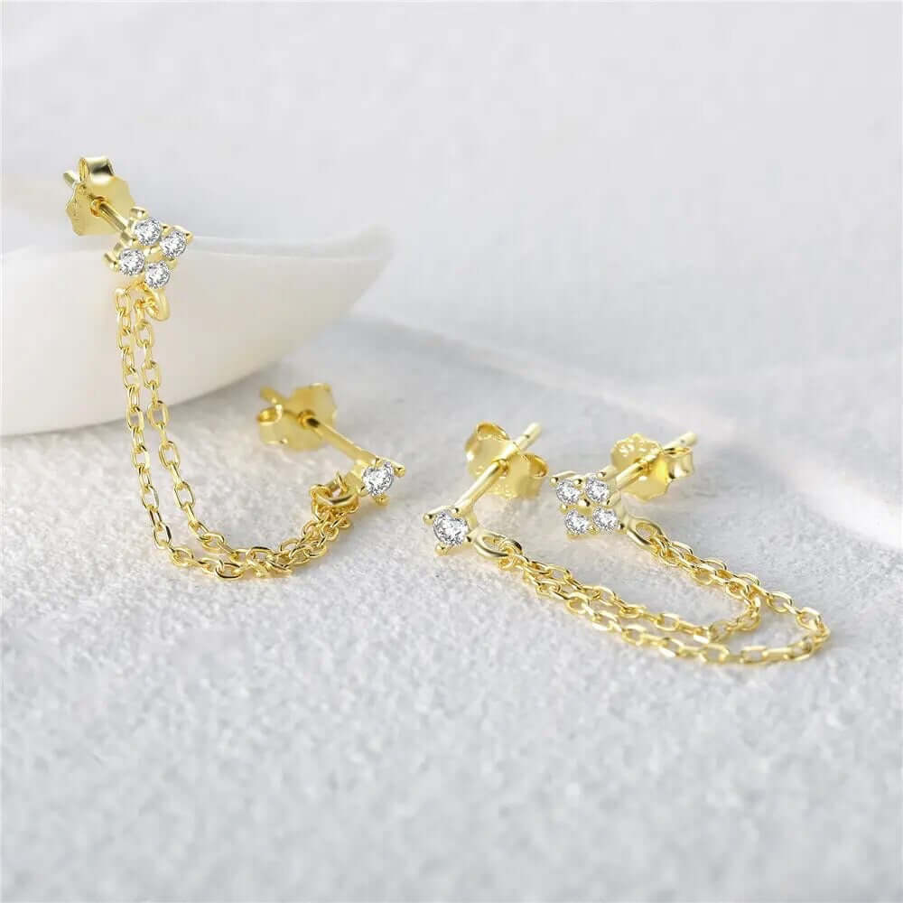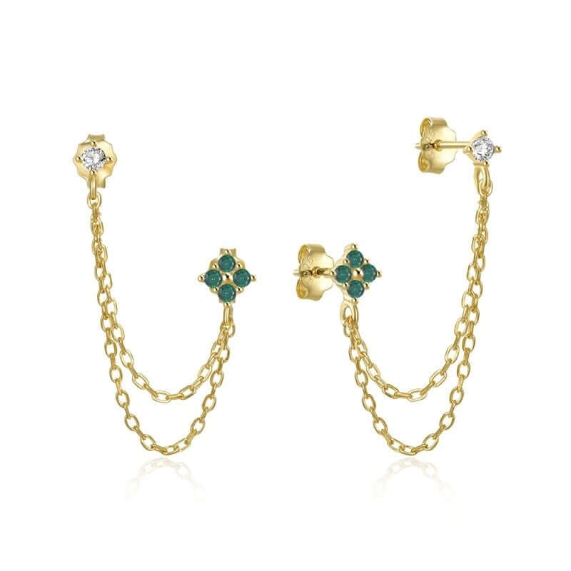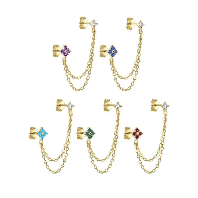 Show off your effortless style with the Sonoma SET! Turn heads with these sterling silver stud earrings connected with two delicate chains. Available in a variety of colors, this set will make any outfit pop!
